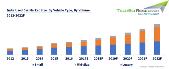 “According to “Techsciresearch” Report India used car market is projected to reach $ 96 billion by 2022, on the back of growing population and rising urbanization in the country. Increasing focus of automakers towards setting up used car networks in different parts of the country and growing inclination of consumers towards used cars owing to their affordability and improved after-sales services are some of the other major factors expected to boost demand for used cars in India in the coming years. Moreover, market growth is anticipated to be driven by rising penetration of online platforms such as OLX, Quikr, etc., that enable used car dealers to boost their reach to a larger audience ”