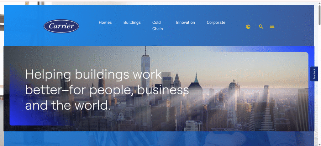 This American pioneer in air conditioning invented the modern AC over a century ago. It has been active in India since early times. Carrier‘s ACS are known for being robust and durable. They emphasise energy savings with high-rated inverters and smart thermostats.