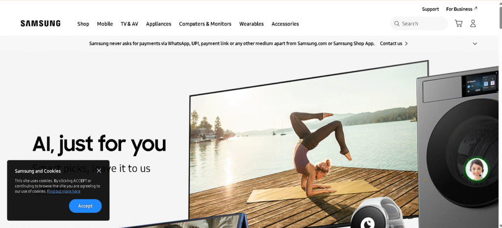 Samsung is another South Korean brand that brings its electronics expertise to Acs. It has been in India for years, offering smart ACs with unique features. Samsung’s WindFree technology is its biggest selling point. This helps to cool the room without direct air blasts. Its AC has thousands of micro holes, and its main flap closes once the room is cold enough; air gently disperses through those tiny holes.