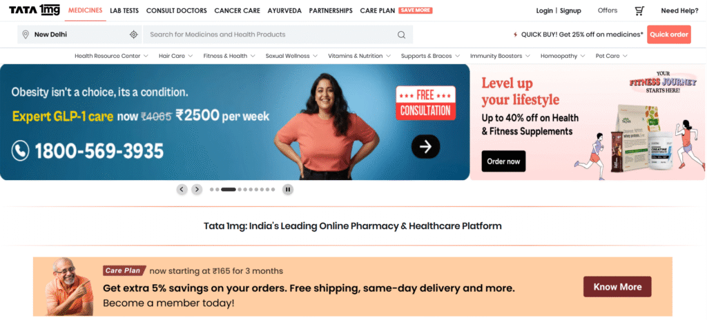 Tata 1mg provides online pharmacy services, lab test bookings, e-consultations, and trustworthy medical information. Supported by the Tata Group, the company recorded an estimated revenue of over ₹1,900 crore in FY24, driven by growth in diagnostics and medicine delivery.