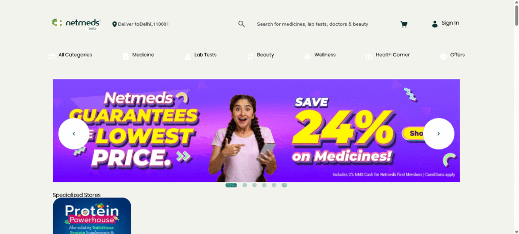 Netmeds, an online pharmacy delivery platform, offers genuine medicines and wellness products. It makes healthcare accessible with doorstep service across India. The company was acquired by Reliance in 2020. It offers generics, teleconsultations, and lab tests, tackling fake drugs and high costs while serving remote areas. Netmeds uses tech for fast deliveries and consultations, helping rural areas too.